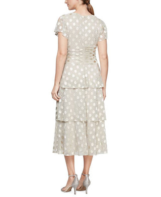 Vestido feminino SL Fashions com pontinhos metálicos e cintura franzida, marrom, tamanho 12