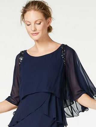 Vestido de festa curto com babados e manga sino, gola redonda e babados, azul, tamanho 18, SL Fashions para mulheres