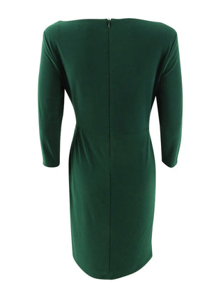 Vestido de coquetel Ralph Lauren feminino com frente torcida, manga 3/4, gola alta, acima do joelho, verde, tamanho 12 pequeno