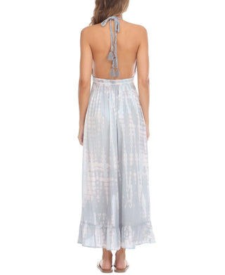 Vestido longo com decote halter tingido Raviya feminino, saída de banho, maiô cinza, tamanho grande
