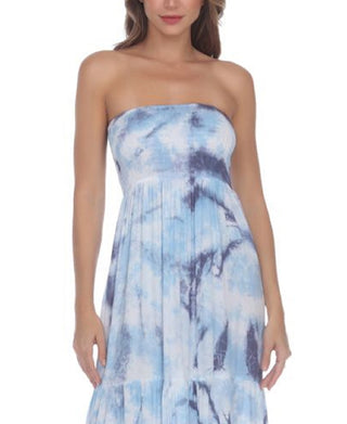 Vestido de banho longo sem alças com estampa tie-dye Raviya feminino, azul, tamanho médio