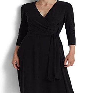 Vestido midi Ralph Lauren feminino em jersey fosco, preto, tamanho 18