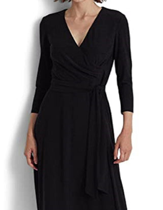 Vestido midi Ralph Lauren feminino em jersey fosco, preto, tamanho 6