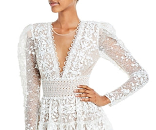 Vestido curto de renda Megan feminino Bronx and Banco, branco, tamanho X-S