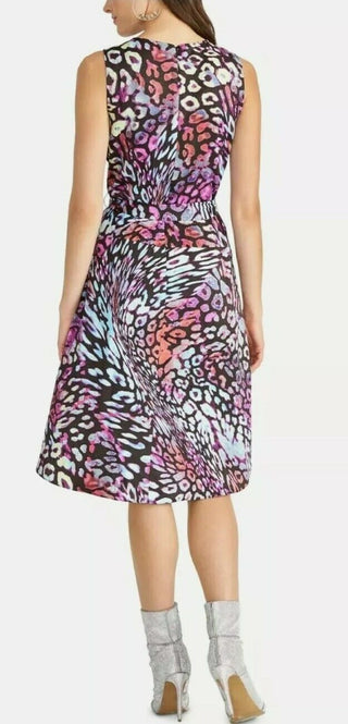 Vestido de coquetel feminino Rachel Roy Hani de cetim com estampa animal, preto, tamanho 0