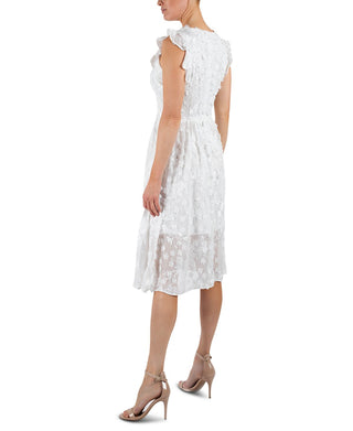 Vestido Julia Jordan Feminino com Zíper, Babados, Bordado, Manga Flutter, Gola Quadrada, Branco, Tamanho 12