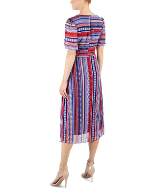 Vestido midi com estampa geométrica listrada Julia Jordan feminino, azul, tamanho 8