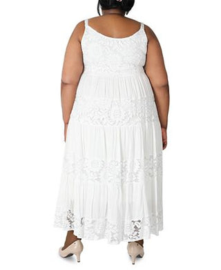 Robbie Bee Vestido longo feminino sem mangas com renda em camadas, branco, tamanho 3X