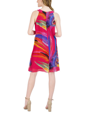 Vestido feminino Robbie Bee estampado em linha A, tamanho pequeno, vermelho