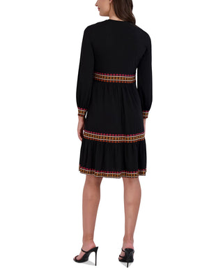 Vestido de malha com acabamento contrastante Robbie Bee feminino, preto, tamanho pequeno grande