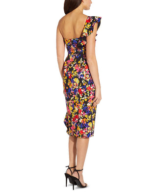 Vestido feminino Aidan By Aidan Mattox com estampa floral e babados, um ombro só, preto, tamanho 6