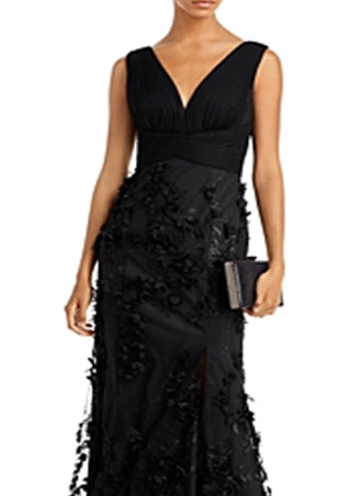 Vestido sereia com apliques florais femininos Aidan By Aidan Mattox, preto, tamanho 8