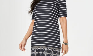 Vestido estampado feminino Karen Scott, preto, tamanho pequeno GG