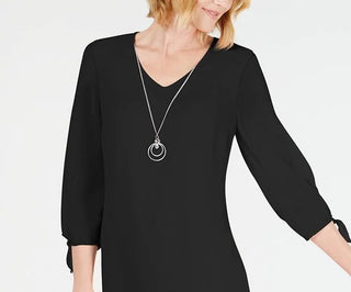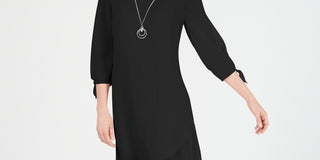 Vestido feminino JM Collection Petite com mangas amarradas e colar, preto, tamanho pequeno