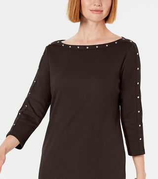 Vestido feminino Karen Scott Petite com decote canoa e tachas, marrom, tamanho Petit