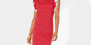 Vestido listrado com mangas franzidas e babados Maison Jules para mulheres, tamanho XS