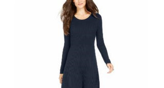 Vestido suéter de malha canelada feminino Style & Co, azul-marinho, tamanho pequeno