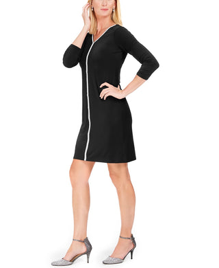 Vestido tubinho com decote em V e decote em V feminino JM Collection, preto, tamanho P