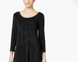 Vestido feminino estilo & co, manga comprida, decote redondo, acima do joelho, preto, tamanho pequeno pequeno