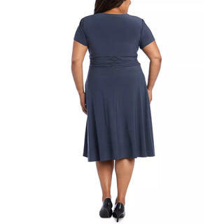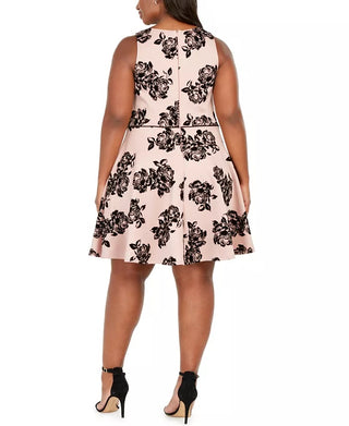 Vestido feminino B Darlin Plus Size com estampa floral Illusion, ajuste e flare, azul, tamanho 18