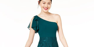 Vestido formal curto e evasê feminino City Studios, sem mangas, decote assimétrico, verde, tamanho 7
