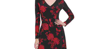 Vestido feminino Tommy Hilfiger com estampa floral, justo e evasê, preto, tamanho 10