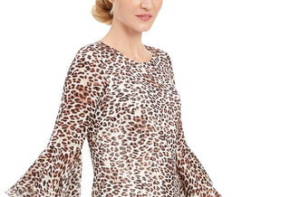 Vestido curto feminino Tommy Hilfiger de camurça sintética e leopardo, tamanho 10, marrom