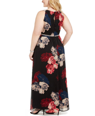 Vestido feminino com estampa floral e detalhes florais da SL Fashions, vermelho, tamanho 14