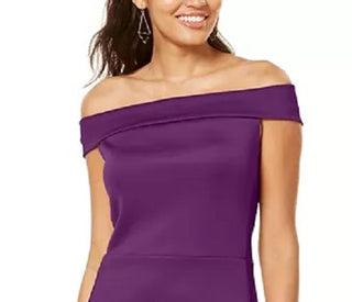 Vestido feminino Thalia Sodi com decote ombro a ombro e acabamento em malha, roxo, tamanho grande