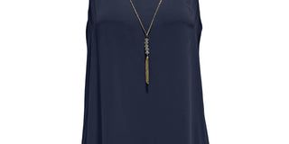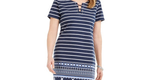 Vestido feminino Karen Scott com decote aberto e amarração, tamanho grande, azul marinho