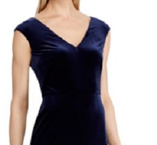 Vestido feminino Kasper sem mangas com bainha recortada, azul escuro, tamanho 10