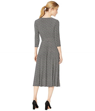 Vestido de festa feminino Ralph Lauren com decote em V, manga 3/4, estilo espinha de peixe, preto, tamanho 6