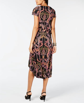 Vestido feminino Thalia Sodi com recorte estampado, cintura alta e bainha baixa, preto, tamanho extragrande