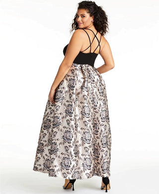 Vestido de baile feminino plus size brocado metálico Morgan & Company, preto, carvão, tamanho 18W, AVER