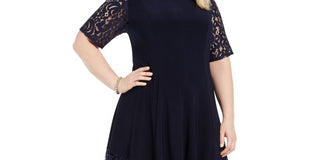 Vestido feminino Jessica Howard com manga de renda e ajuste evasê, azul-marinho, tamanho 14W