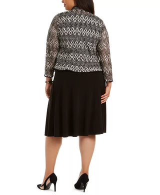 Vestido midi plus size feminino Jessica Howard e jaqueta de renda chevron cinza tamanho 14W