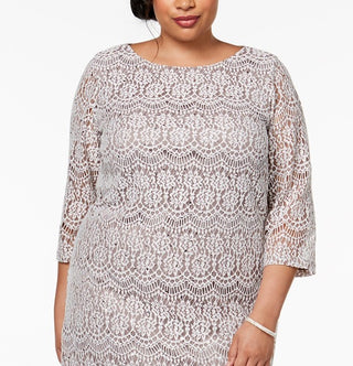 Vestido de renda com lantejoulas plus size Jessica Howard feminino, bege escuro, tamanho 20