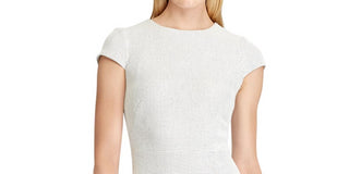 Vestido Ralph Lauren Feminino Marfim com Zíper e Bolinhas, Manga Curta, Gola Joia, Comprimento até o Joelho, Ajuste Flare, Branco, Tamanho 14