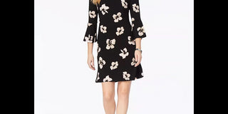Vestido feminino Tommy Hilfiger com estampa de jersey e manga sino, corte A, preto, tamanho 12