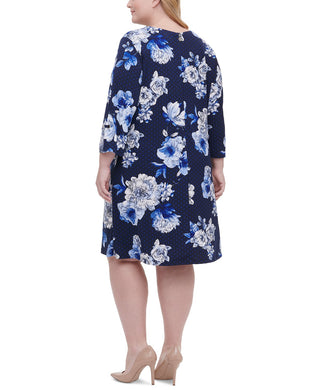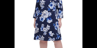 Vestido feminino plus size Tommy Hilfiger com estampa floral e mangas ilhós, azul, tamanho 14W