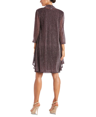 Vestido e jaqueta de malha amassada feminina R & M Richards, tamanho 14 P, vermelho escuro
