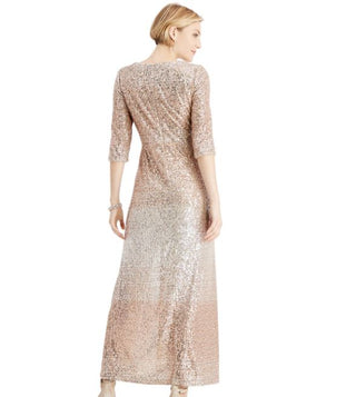 Vestido feminino R & M Richards com lantejoulas bege tamanho 12 pequeno