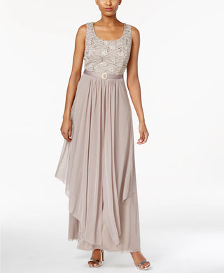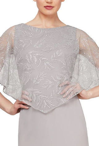 Vestido Capelet Overlay Feminino SL Fashions Cinza Tamanho 8 Petite