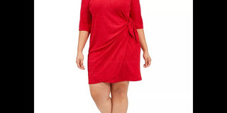 Vestido sarongue de malha com glitter plus size Robbie Bee feminino, vermelho, tamanho 1X