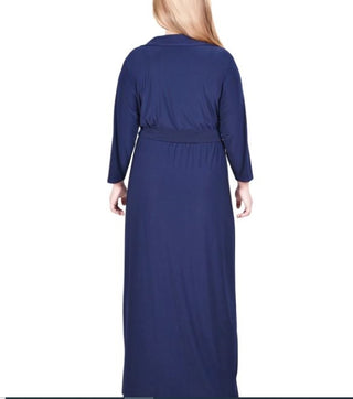 Vestido longo plus size feminino NY Collection, azul marinho, tamanho 1X