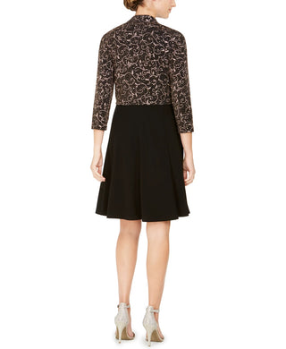 Vestido feminino DKNY com estampa floral abstrata e ajuste evasê, preto, tamanho 6