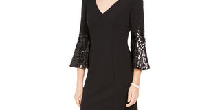 Vestido de coquetel feminino Vince Camuto com lantejoulas e manga flare, preto, tamanho 14