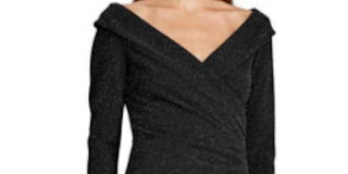 Vestido de festa Ralph Lauren feminino, manga longa, decote em V, abaixo do joelho, preto, tamanho 4