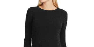 Vestido de festa Ralph Lauren feminino, manga longa, brilhante, decote em joia, comprimento até o joelho, preto, tamanho 0