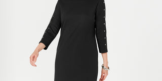 Vestido feminino Karen Scott com decote canoa e tachas, preto, tamanho PL